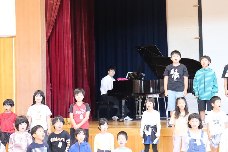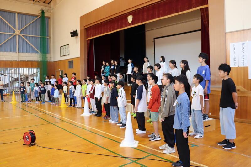 10月15日(水) 全校音楽練習 投稿日時 : 10/15 サイト管理者 カテゴリ: 2回目の全校音楽練習です。今日は音の強弱に気を付けて練習しました。伴奏と指導の抜群のコンビネーションが子どもたちの歌声を支えています。