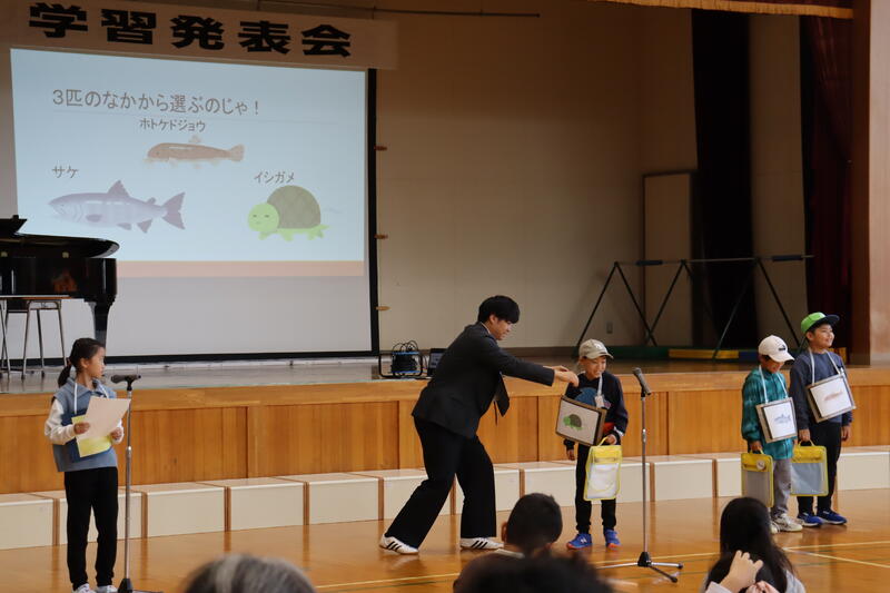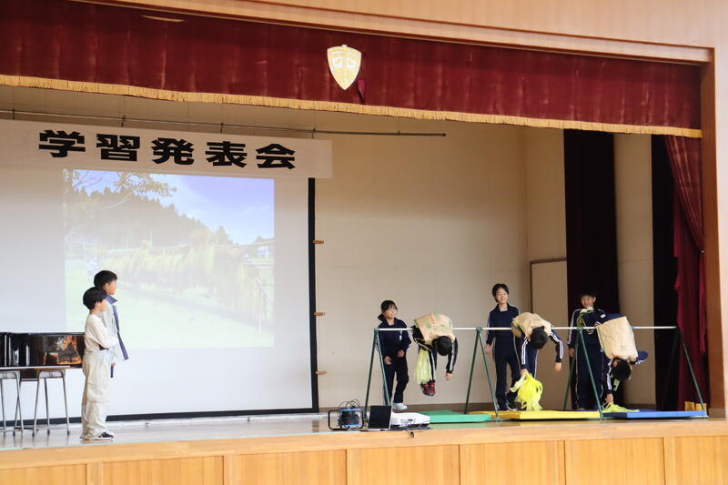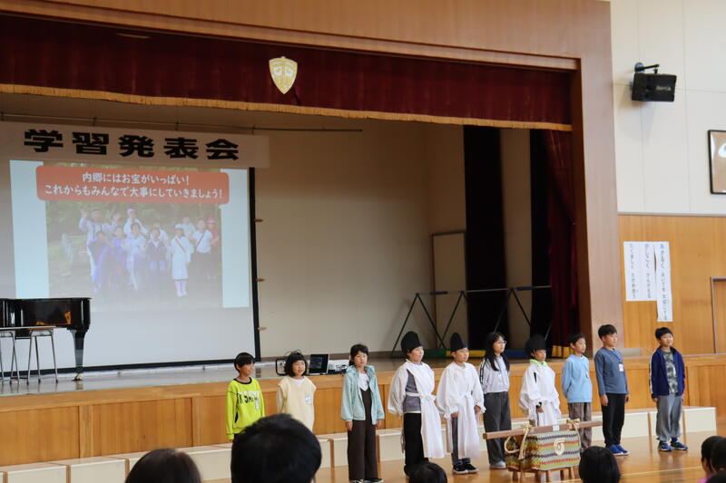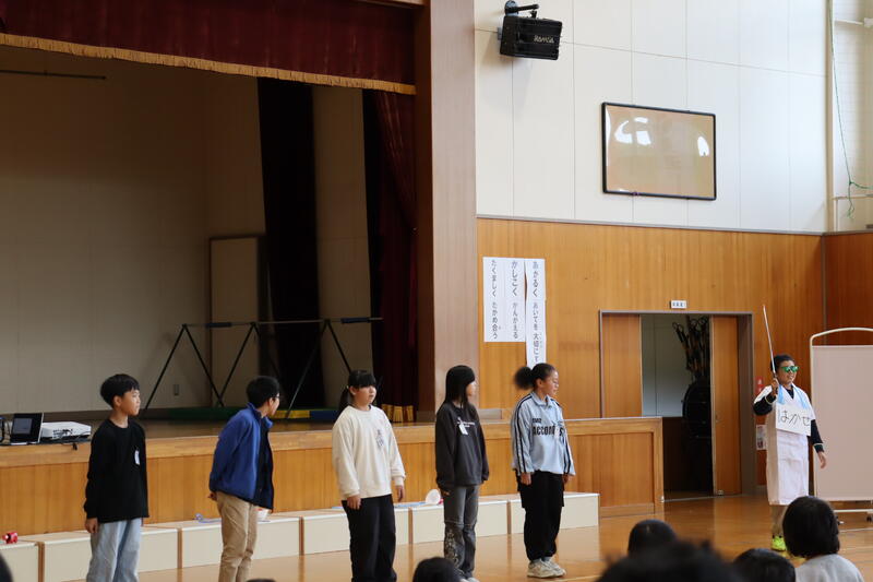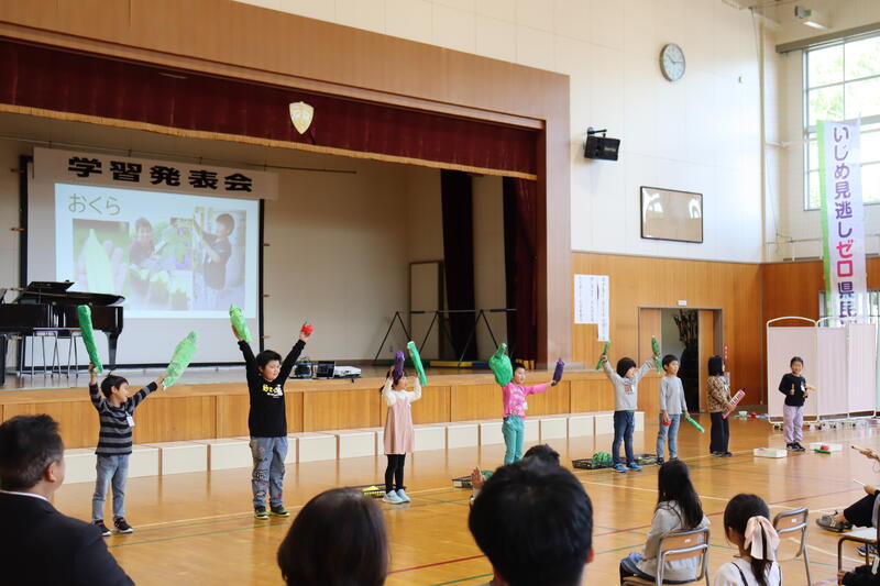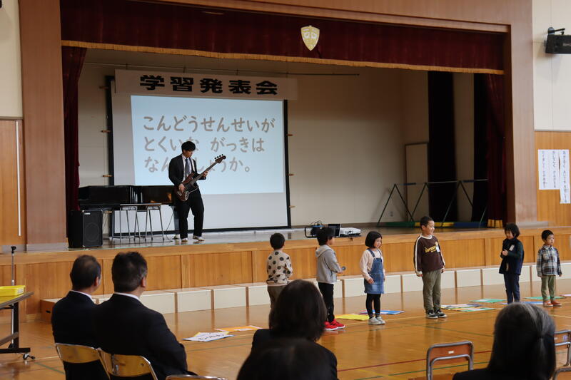 来賓の方々、地域の方々、保護者の方々、総勢150名ほどの皆様の前で学習発表会ができました。前半は1・3・5年生が発表しました。クイズや歌、劇等の楽しい発表でした。