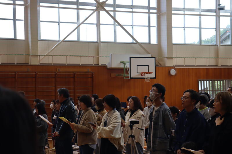 全校合唱も披露しました。PTAは「夢」という難しい曲を60名ほどで歌いました。最後は会場の皆様で「ふるさと」を合唱しました。