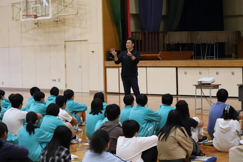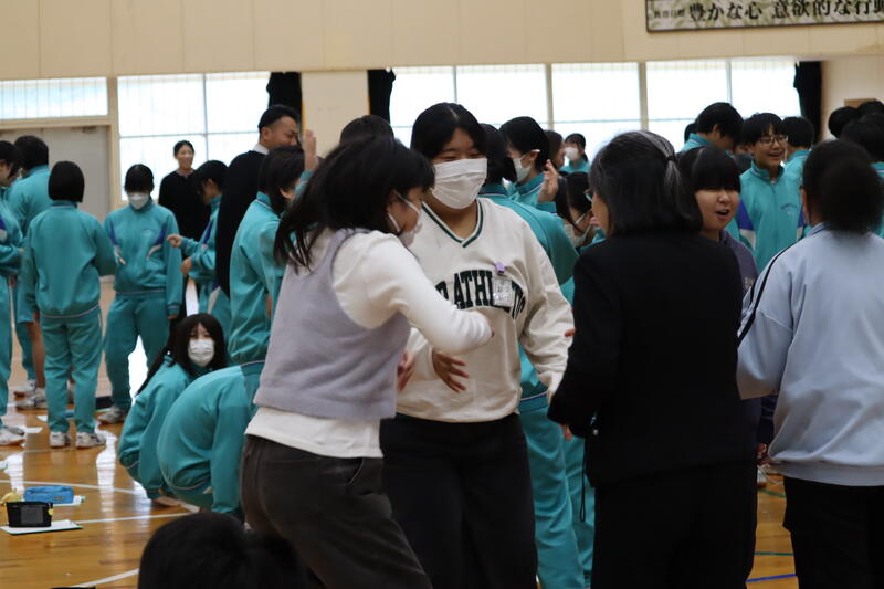 二田・内郷小の6年生と西山中学校の全校生徒が参加しました。日本スポーツ協会スポーツプログラマーの大塚謙児様を講師に迎え、運動の役割や大切さ、楽しさを実技を交えて教えていただきました。「餃子じゃんけん」は大いに盛り上がりました。