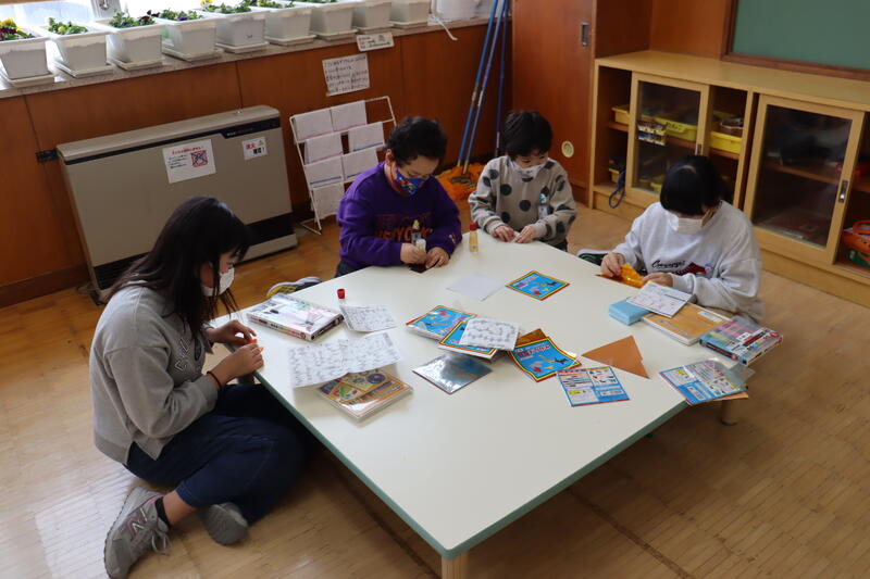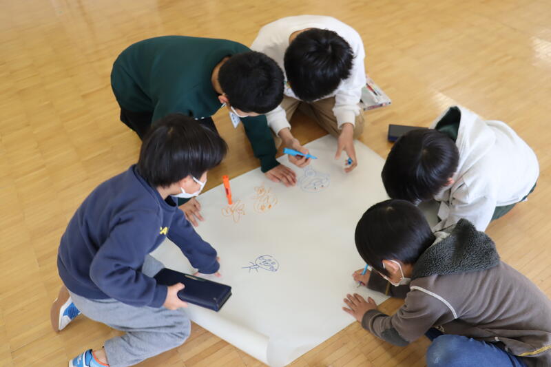 今日から6年生に感謝するありがとうウィークが始まりました。 その中の1つ「お楽しみ活動」は昼休みに6年生とやりたい遊びを各学年が考えます。1年生はお絵かきと折り紙を6年生とやりました。お互いに顔をつき合わせて楽しそうでした。