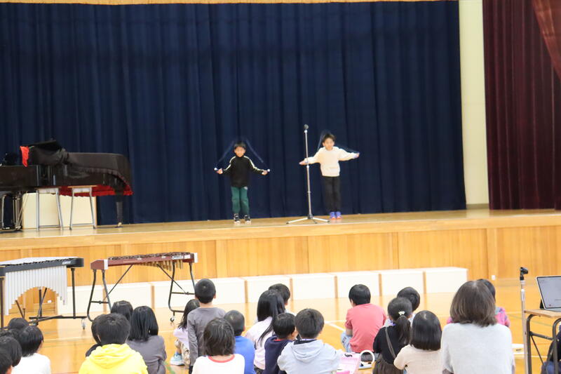 児童会の総務委員会が企画・運営しました。みんなで英語の歌を歌った後、特技の披露が始まりました。ダンス、ピアノ、なわとびと、みんな見事な発表でした。最後は3・4年生が親善音楽会で演奏する合唱と合奏を披露しました。おうちの方の応援もありました。ご多用のところありがとうございました。