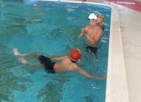 その後、子どもたちと一緒に給食をとった後、アクアパークで水泳指導をいただきました。
