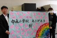 いずれも大きな紙に皆様一人一人の気持ちのこもったメッセージが書かれていて、すごくうれしかったです。1枚は、卒業生向けに感謝の卒業メッセージが書かれてあり、もう1枚には、閉校になる中通の児童に対して感謝のメッセージが書かれてありました。
