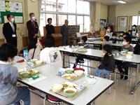 11月19日(水)柏崎で給食の食材を生産されている方々をお呼びして、地場産給食デーを行いました。中通地区では、まこもだけの生産者である大日様からお越しいただき、子どもたちと一緒に給食を食べました。この日のメニューは、まこもだけを使ったハンバーグでした。子どもたち、そして大日様も喜んで給食を食べました。地場産の食材を知るいい機会になりました。