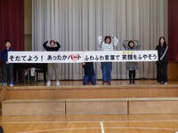 11月6日(木)「いじめ見逃しゼロスクール集会」を行いました。若葉班(縦割り班)ごとになって、気持ちのよい言葉づかいについて考えました。
