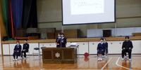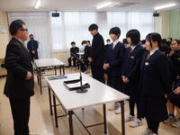 来年度の生徒会長、生徒会副会長2名の計3名が、鏡が沖中学校で行われた生徒会交歓会へ参加しました。