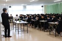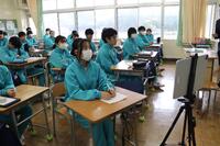 前半は教室で、動画やスライドを見ながら、建設コンサルタント、建設業、県土木部の仕事内容の説明を聴きました。