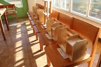 1年生:技術「木材加工(本立て他)」、美術「人物クロッキー」・「等身大の私」・「石ころアート」