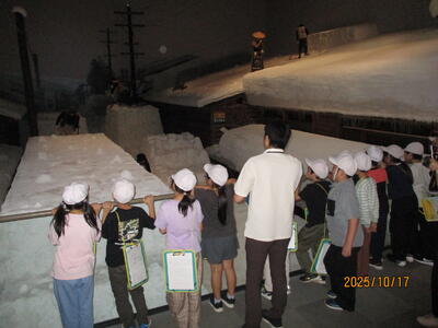 中学年はお弁当をもって1日校外学習の日です。越後製菓さんで、おせんべいができるまでの話を聞いたり、実際にどうやってできるのか見学させてもらったりしました。県立長岡歴史博物館では、昔の道具や雪国のくらしの様子をリアルな雰囲気で見てくることができました。楽しかった!と元気に帰ってきた子供たちです。