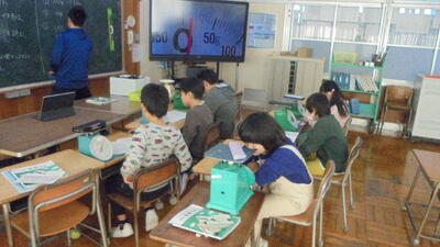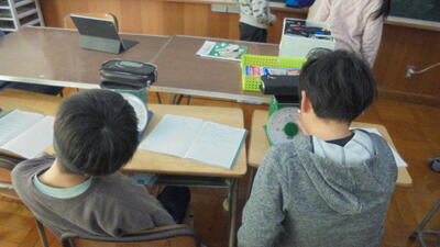3年生の算数は重さの学習に入りました。今日は、初めて量りを使って重さを調べます。身の回りのいろいろなものの重さを調べて、量感を養う子供たちでした。