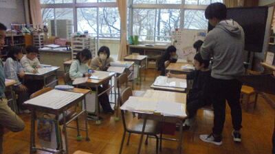 今日は大雪ですが、暦の上では、明日は節分です。学校では、追い出したい鬼を一人一人が考えて、それぞれの鬼を貼り出しています。早く春が来るといいですね。冬と言えば版画の季節。中学年は、版画を版木に写す学習に入りました。