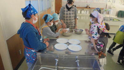 今日が冬休み前の最後の登校日。低学年は収穫した大根で大根もちをつくり、楽しみました。中学年は「忘年会」をするとはりきって、体育館で楽しく体を動かしていました。給食はハヤシライス。おいしい給食をみんなで食べて、今年最後の日を過ごしました。