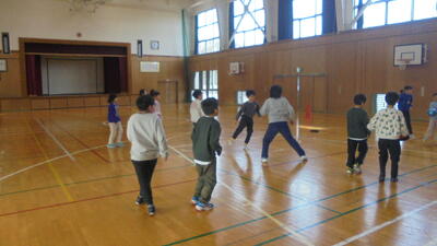 体育では、低学年は縄跳び、中学年はポートボールを学習していました。どちらも、ものすごく体力を使う運動です。縄跳びは、リズミカルに跳ぶ方法を少しずつ身に付けて、いろいろな技に挑戦します。ポートボールは、チームなので周りの人の動きを見て考えながら動かなくてはいけません。たくさん動いてすっきりと気持ちよく過ごす子供たちです。