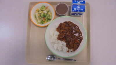 本日は鯖石小学校のリクエスト給食。ごはん、子供に大人気の鶏のから揚げ、のりずあえ、肉じゃが、牛乳、ヨーグルトです。みんなわくわくして盛り付けたり配膳したりしていました。