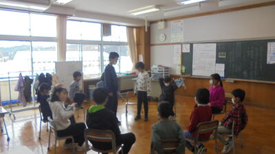 6年生を送る会の一貫として、全校やさばいし班(異学年交流班)で遊びました。始めは中学年の司会進行で鬼ごっこ。時間を決めて、鬼をどんどん増やしてと工夫して運営していました。来年度の高学年としての動きができはじめてますね。次に各活動場所に分かれて、それぞれの班で遊びました。この班で活動できるのも、あと3週間ほどです。
