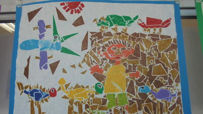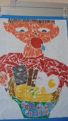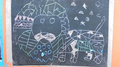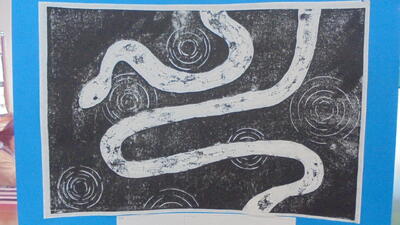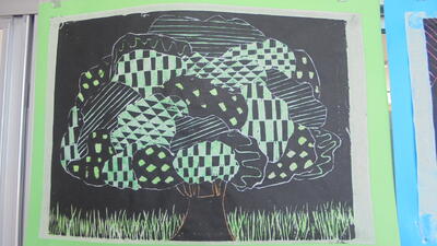子供たちの素敵な版画作品が廊下にたくさん並んでいました。子供の表したいことを伸び伸びと表現しています。カラフルな版画あり、白黒のシックな版画あり。バラエティに富んでいて素晴らしいです。