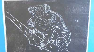中学年は図工室で木版画を刷り始めました。4年生が上手に3年生にやりかたを教えています。自分の彫ったものが紙に写し出され、きれいに刷れたことに喜びながら活動をしていました。