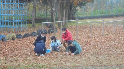 校庭の木々には雪囲いが施され、もうすぐやってくる冬への準備が始まっています。校庭で思い切り遊べるこの季節を、十分に満喫してほしいですね。