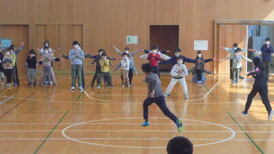 6年生を送る会の一貫として、全校やさばいし班(異学年交流班)で遊びました。始めは中学年の司会進行で鬼ごっこ。時間を決めて、鬼をどんどん増やしてと工夫して運営していました。来年度の高学年としての動きができはじめてますね。次に各活動場所に分かれて、それぞれの班で遊びました。この班で活動できるのも、あと3週間ほどです。