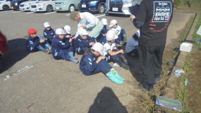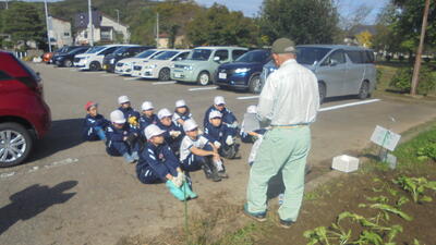 中学年は柏崎地場特産品である土垂いもを育てていますが、この秋から与板菜も育てようということで本日苗植えをしました。与板菜は与板でつくっている野沢菜ということで、昔から地域でつくっていた野菜だそうです。与板菜をつくってきた歴史を聞いて、自分たちも育てようと決意を新たにする子供たちです。