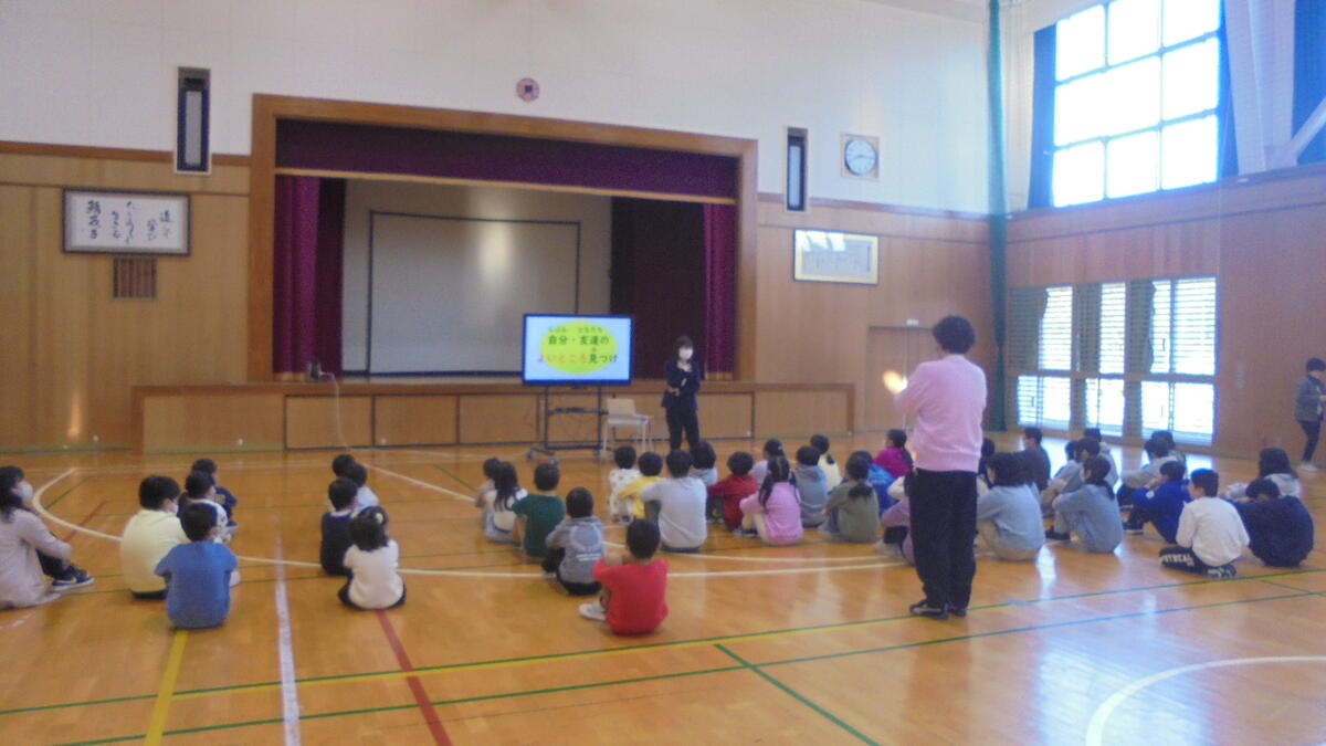 学習発表会も終わり、しばらく大きな学校行事はありません。今日は、これからのめあてとして、「きずな強調月間」を12月に設定したので、きずなづくりをしっかりとやっていこうねと生活指導主任から話がありました。自分のよいところをペアで話し合ってよい反応の仕方を学んだり、レクリエーションできずなづくりを体験したりする朝の様子です。