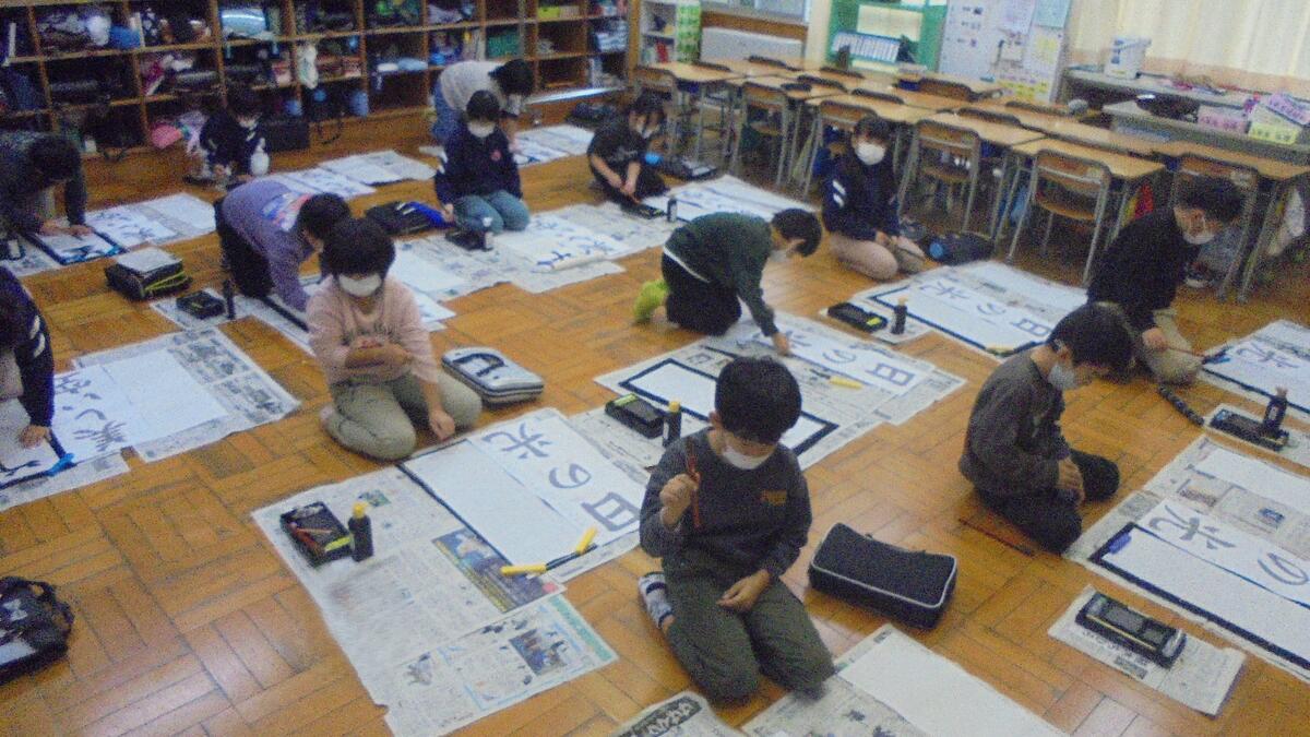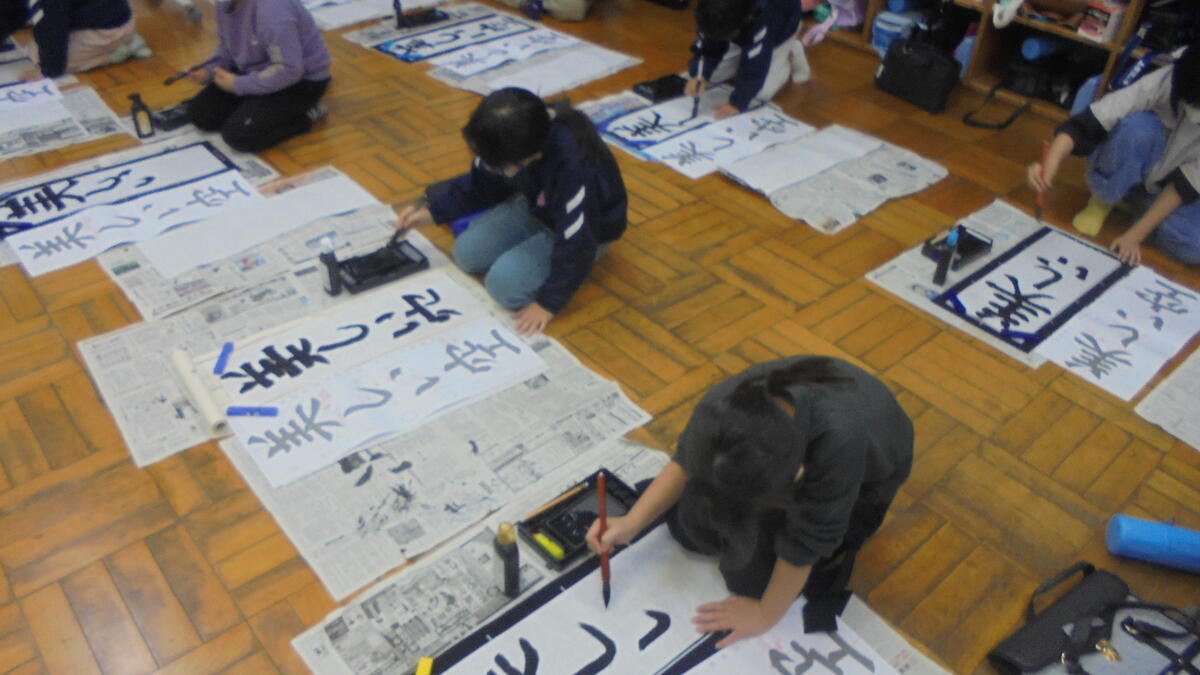中学年もいよいよ書初めの練習です。3年生は「日の光」4年生は「美しい空」です。漢字のバランスなどに気を付けて、一生懸命に書いていました。初めてなのに、みんな結構上手に書けています。