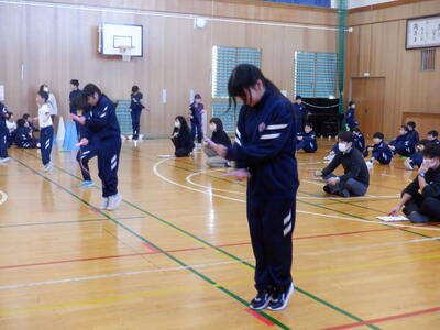 児童会室を覗くと高柳雪まつりで飾ってもらう和紙灯りがかわいらしくできあがっていました。子供たちの感性が素敵です。さて、来週は縄跳び大会です。長縄の部と短縄の部があります。団体種目と個人種目ですね。今日は、長縄を各学年で一生懸命練習していました。それぞれ力を合わせて練習したり、楽しくよい表情で挑んでいたりする子供たちです。