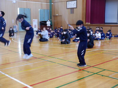 今日はこれまでの練習の成果を披露するなわとび大会本番です。始めの長縄の部では、全ての学年で新記録が出て子供たちも大喜び。続く短縄の部も一人一人が自己ベストを目指しました。心地よい疲れの中、令和7年度のなわとび大会が終了しました。来年に向けてまた力を蓄えていきましょう。