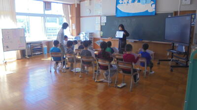 今日は1年生の国語の学習を職員で参観して研修を行いました。子供たち役とくじらぐも役に分かれて動作化したり音読をしたりして場面の再現をしていきます。楽しそうに演じる様子に見ている職員も笑顔になりました。