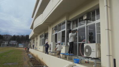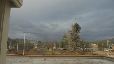 今日はたくさんの鯖石っ子応援隊(保護者ボランティア)の皆様からお手伝いいただき、普段できないところなどの大掃除。普段の清掃に加えて、窓ふきや手洗い場などすみずみまできれいにしようと頑張りました。一生懸命に頑張る子供たちに最後はお空が祝福して、虹がかかりました。