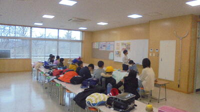 12月24日からは子供たちが待ちに待った冬休みが始まります。今日は、冬休みの地域での過ごし方やこれまでの登下校について振り返り、安全に地域で過ごしたり、登下校したりしようとする地域子供会の日です。全部で6グループに分かれて、地域子供会をしました。高学年を中心にしっかりと振り返る子供たちです。