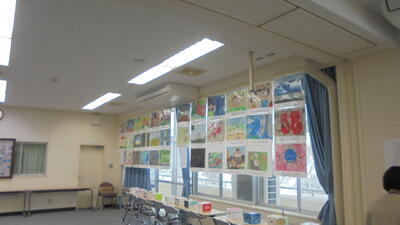 高学年は授業参観時に美術展をする予定でいました。視聴覚室には、高学年の絵画や工作が並んでいます。他の学年も絵や書初めなどを掲示してあります。授業参観が中止になったため、本日は観覧できませんが、後日、作品鑑賞を自由にしてもらう期間を設けたいと思います。詳細は配信メールでお知らせしますので、是非、見に来てください。