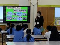 健康委員会による給食クイズのほか、大森栄養士さんからの学校給食の歴史についてのお話、給食に携わっていただいている方々の紹介等がありました。