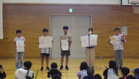 さて、本日朝に、前期終業式&後期始業式を行いました。まずはじめに、先日行われた親善陸上大会の入賞者に賞状の伝達を行い、その後、1,3,5年の各代表児童から、前期の振り返りと後期の目標やめあてについて発表してもらいました。3名とも、自分自身のこれまでを真摯に振り返り、自分がさらに成長するために何をすべきかについて、よく考えて具体的に発表していました。この3名の代表児童のように、新たに再設定した目標やめあての実現に向けて、みんなから地道に努力を続けてほしいと願っています。