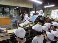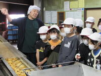 名物の「くろ羊かん」や「網代焼」の製造過程について、実際に工場内を見学させていただいたり、お店の歴史や大切にされていることなどについて説明を受けたりしました。子どもたちは、お客様に長年愛される品を提供し続けることの大変さややりがいなどを肌で感じることができたようです。