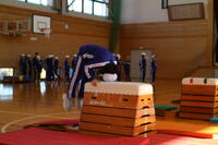12月19日、柏崎の師走、年の瀬に近づいてきている中での晴天に感謝です。児童は元気に外で遊んでいます。4年生は4時間目に跳び箱に挑戦していました。ケガの多い跳び箱運動ですので、一つ一つ丁寧に、整然と授業が進んでいきました。挑戦の場面を見ることができました。高い段を自信をもって飛び越えている児童が多くいました。ただ飛ぶだけでなく、跳び箱の上で前転をする台上前転の技に挑戦している児童も多くいました。中には、足を跳ね上げてネックスプリングの技に移行している児童もいました。恐怖、できない事への挑戦は勇気のいることです。4年生はよく頑張っていました。
