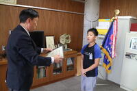 7月23日、暑い予報は出ていましたが、朝から体育館も暑い状態でしたので、急遽、冷房の効いた教室で夏休み前に伝えたい話を校内放送で行いました。校長からは、命を守る、そのために交通事故、自転車乗りの注意、そして、お手伝いのすすめを話しました。表彰を予定しておりましたので、放送で正式を発表し、休み時間に校長室で表彰を行いました。