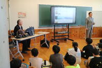 10月15日、6年生は、一般財団法人たくろう未来基金の代表理事の土田茂博様より、映画上映とこの映画に託した思いを話していただきました。土田様の大切な息子拓朗さんが、10歳で他界してしまったことを受け止め、幼いながら真剣に剣道に向き合い、心と体を鍛えていたことを振り返り、未来を創る子どもたちの成長に少しでも役立てばという思いから未来基金を立ち上げ、様々な支援を続けています。映画を通して、6年生が何を感じてくれたのか、心の中に拓朗さんの思いを受け止めてくれたのか、期待したいと思います。柏崎剣道連盟の会長である岡田様からもおいでいただきました。