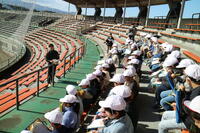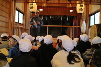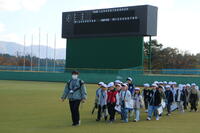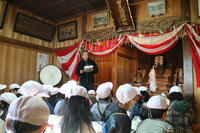 11月12日、小春日和の中、田尻物部神社、茨目白山神社、佐藤池球場を巡り、キラリ光る地域の宝を探してきました。何よりも気持ちよく、秋晴れの下、活動ができました。地域の代表の皆様から説明をしていただきました。古い歴史ある神社を守り、引き継いでいることが何より有難いことです。細かな説明をいただき、地域の宝として光る意味を少し分かったようです。佐藤池球場では、スタンドからの景色とベンチから、芝生まで降りさせていただき、広大な球場に足を入れさせていただきました。貴重な活動になりました。