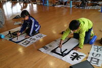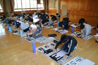 12月2日、広い多目的室に3年生が集まり、書き初めの練習が始まりました。2年生までは、硬筆での書き初めでしたが、3年生からは毛筆になります。しかも大筆を使っての習字は難しいものです。身の回りを整理して、墨をこぼさずに作品に仕上げていくため、集中力が必要です。3年生は、持ち前の元気を少し落ち着かせ、「日の光」という文字に挑戦していました。