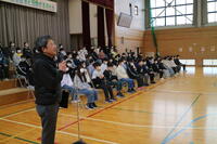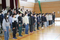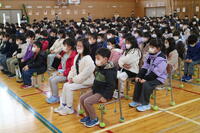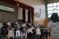 3月5日、2時間目に卒業式の全校での練習を行いました。今日は、気温が下がり、寒い体育館でしたが、暖房をつけ元気に行いました。6年生のキリっとした様子、そこに応えようとする在校生。座り方、起立の仕方、礼の仕方などの基本動作を少し練習しました。以前に比べ、練習はほぼ1回、時間をかけ過ぎず、全体での統一した動きになるように確認しました。インフルエンザが流行し始め、全校がマスク着用で参加した練習となりました。