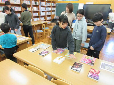 11月17日(月)から28日(金)までを校内読書旬間としています。初日の今日は、職員の読み聞かせをもとにアニマシオンを行いました。長新太さんの「なにをたべたかわかる?」を聞いた後、食べられた順番を思い出してみましたが、全て正解とはなりませんでした。聞いているようで聞きもらしてしまうことがあることが分かりました。新しい図書も入り、ますます読書に親しんでいければいいなと思います。