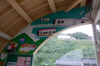25日(土)の午後は、笠島駅の待合室のお披露目会でした。JR東日本新潟支社や新潟工科大学、NPO法人aisa、不二美術印刷の協力を得ながら、児童が考えた米山地区の魅力を散りばめたラッピングが完成し、保護者や地域の皆様に見ていただきました。「すごい!」「かわいい」と多くの皆様から声を掛けていただきました。地域の魅力を発信する場所になり、電車を利用する方が喜んでくださるとうれしいです。