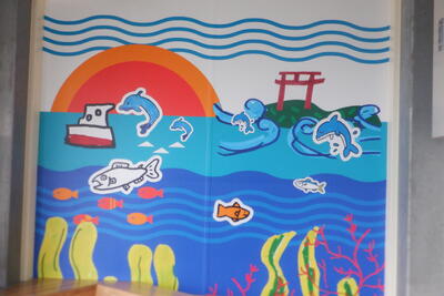 16日(木)、JR笠島駅で始まっている待合室のラッピング作業の手伝いをさせていただきました。米山地区の魅力を待合室に散りばめようと考えたデザインが、まもなく完成になりました。JR東日本新潟支社様の窓の開口工事などと連動してラッピングが施されています。待合室に入った子どもたちは、「わー、すごーい」といった声が出るほどの感激でした。デザイン会社様が用意してくださった魚やキャラクターのシールをどこに貼ろうかと悩みながらも、とても楽しそうでした。25日(土)の午後にいよいよお披露目となります。