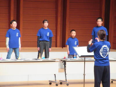 13日(木)、柏崎市文化会館アルフォーレで柏崎市・刈羽郡小学校親善音楽会が行われました。大洲小学校の和太鼓演奏と鯨波小学校のリコーダー奏に続いて、米山小学校の出番です。大勢の友達や保護者の見守る中、練習を重ねてきたミュージックベル奏「君をのせて」、斉唱「WAになっておどろう」を披露しました。澄み切ったミュージックベルの音、心を一つにした歌声に、会場の皆さんからは、惜しみない拍手をいただきました。