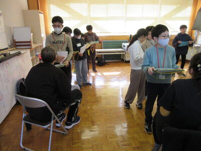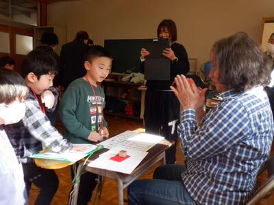 市内小中学校にお勤めのALT6名の皆さんが来校してくださり、English dayを行いました。鯨波小学校の皆さんにもおいでいただいて、一緒に学習しました。1~4年生は、「What ~ do you like?」「I like ~」を使って、好きな食べ物やスポーツ、色などについて会話をしました。5・6年生は、「Where do you want to go~?」「What`s your best memory?」「I want to go to~」などでの会話です。はじめは少し緊張気味の子どももいましたが、すぐに慣れてきたようで、「Oh!」「Me too」などの言葉も入れながら、会話を続けていました。子どもたちの上達ぶりには、いつも驚かされます。