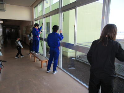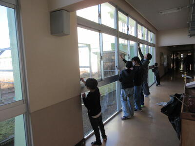 暮れの大掃除の時期です。今日は、窓ガラス拭きを行いました。作業をしてみると、校舎内のガラス面も予想以上に汚れていることが分かりました。天気がよかったので、作業の終わった窓の外の景色がとてもきれいでした。