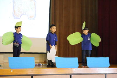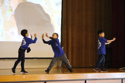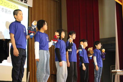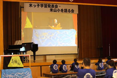 25日(土)、午前の部のスタートは「米っ子学習発表会」、大勢の皆様においでいただきました。1年生は、毎日世話をしているあさがおや教室の仲間のモルモットについて紹介しました。4・5・6年生は、無人駅リノベーションプロジェクトや人形劇上演に関わってくださった方々への感謝の言葉を述べ、その後、地域の民話「空飛ぶ米俵」の人形劇を上演しました。全校音楽発表では、ミュージックベルや斉唱の美しい音色と歌声を届けました。会場の皆様方からは、大きな拍手をいただきました。